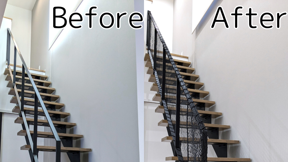 今回は、家の階段の手すりに転落防止ネットを取り付けた話をしようと思います。