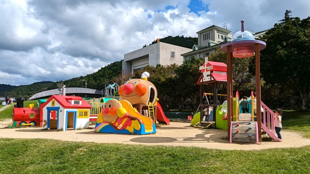 アンパンマンミュージアムには「道の駅 美良布(びらふ)」が隣接していて、アンパンマンのキャラクターでいっぱいの公園や大きな芝生広場があります。